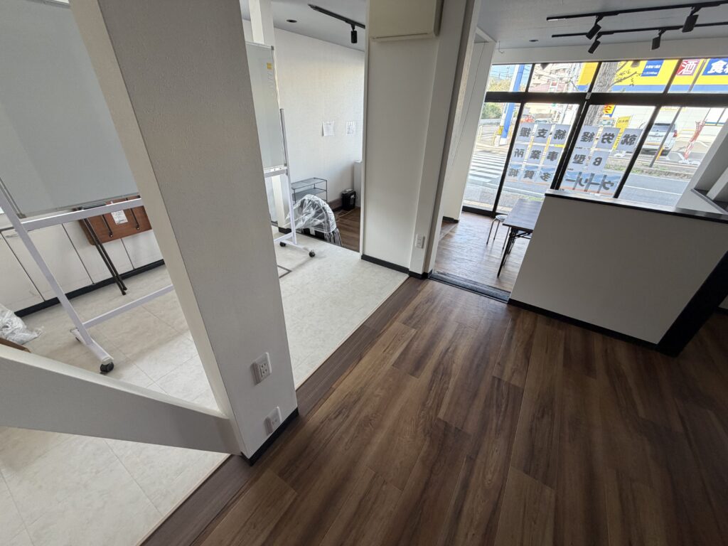 新規出店のため、オフィスはできるだけ予算をかけたくないとのご依頼でしたので、構造、間仕切りの変更など、申請などの手間のかかる内容を限りなく省きました!